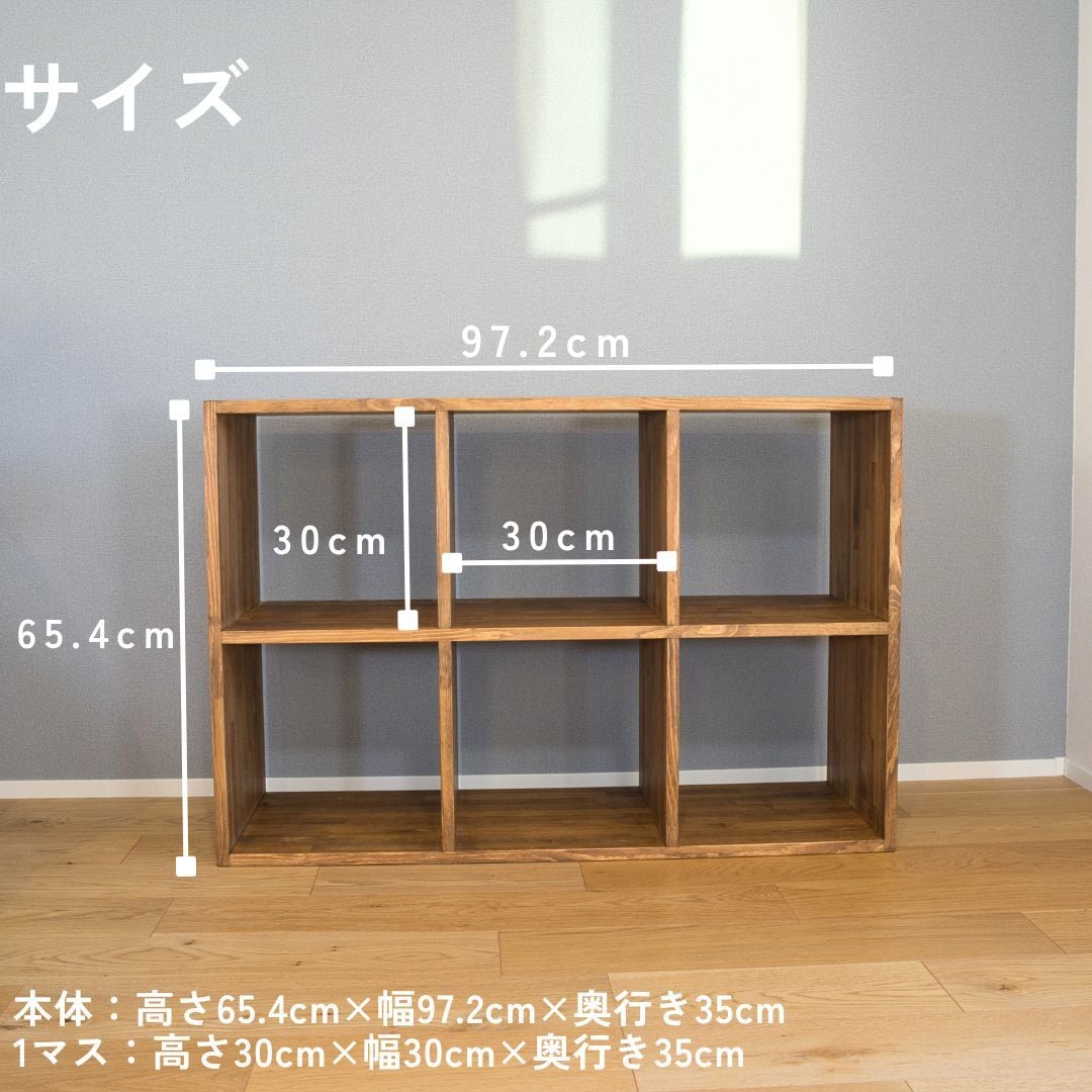ワイドマスシェルフ 30cm角 2×3タイプ|選べる脚付き・木製収納棚