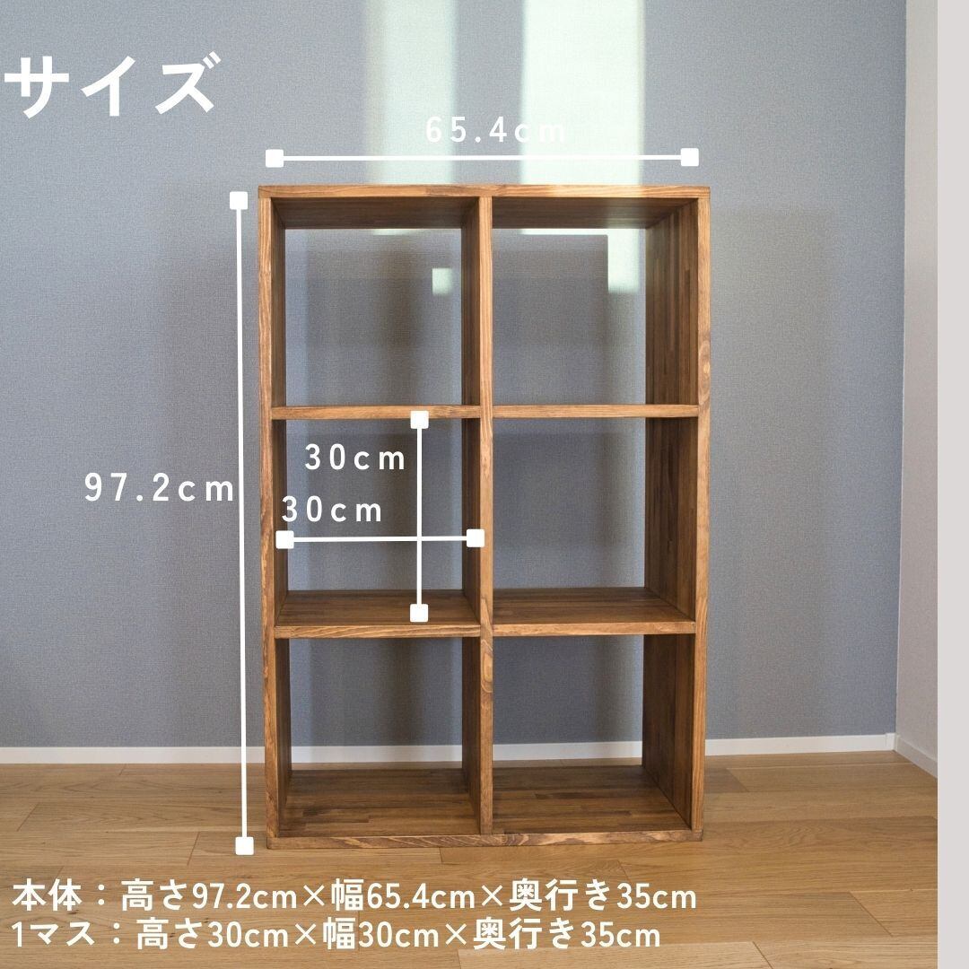 ワイドマスシェルフ 30cm角 3×2タイプ|選べる脚付き・木製収納棚