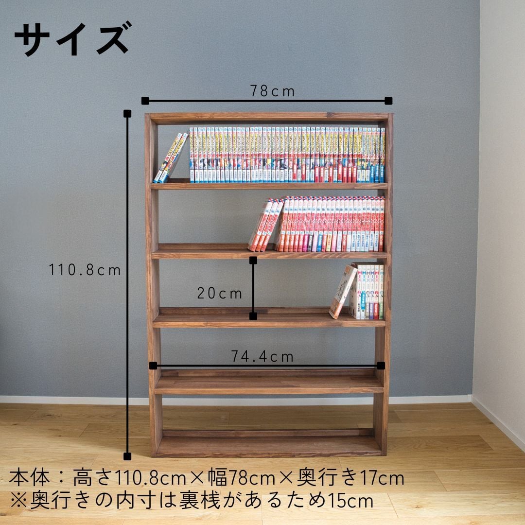 漫画専用本棚 5段 高さ110cm 幅78cm 奥行き17cm
