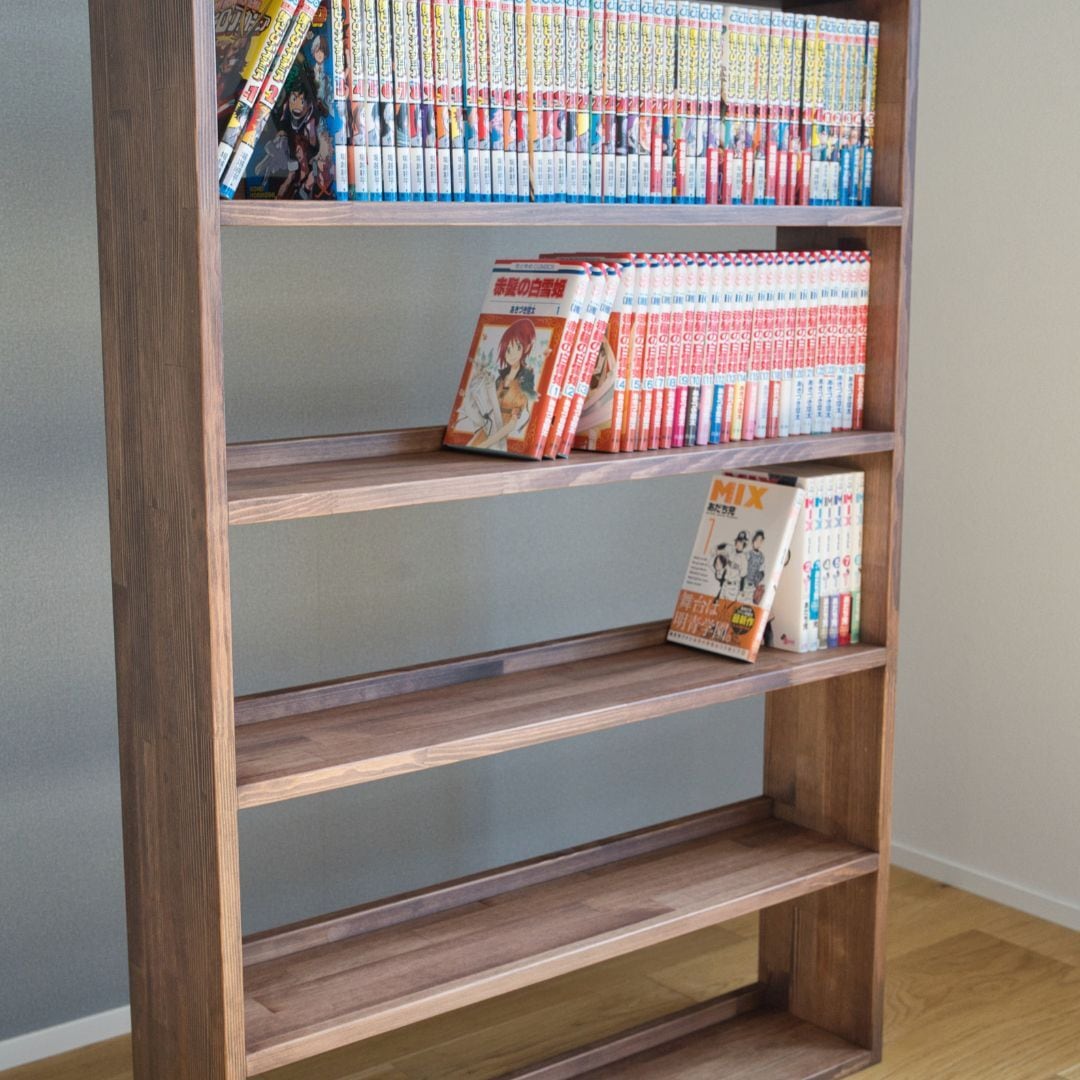一般的な本棚では、漫画を入れると上に空間が余ったり、奥行きが深すぎて前後にズレたり。