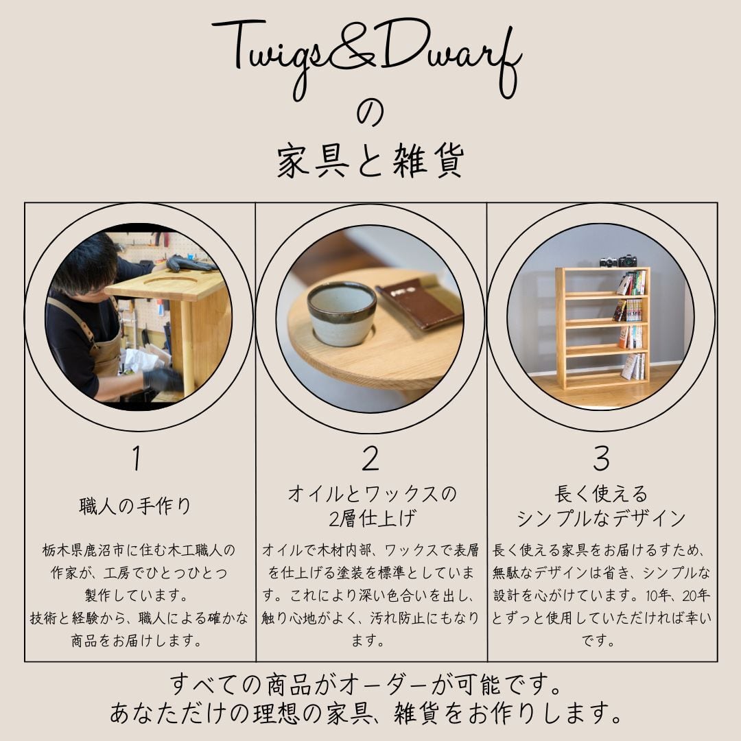 そのため、しっかりと製作期間をいただき、時間をかけることで、末永く愛される家具をお届けしたいと考えております。